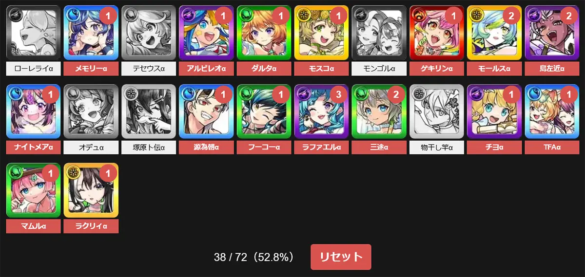 オンリーαプレミアムセレクションガチャの開催に伴い、とりあえずαキャラの所持数・所持率をチェックできる記事を作成してみました。