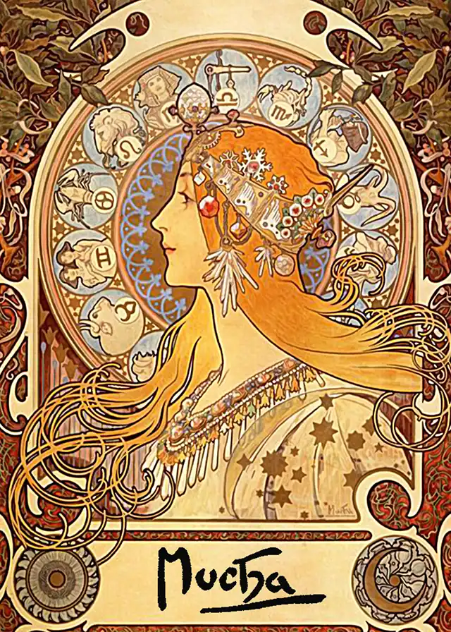 「ムウマージ」のアートレアに描かれている背景は、アルフォンス・ミュシャの「黄道十二宮」などの絵画作品、あるいは装飾様式「アール・ヌーヴォー」を想起させます。