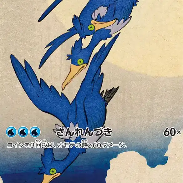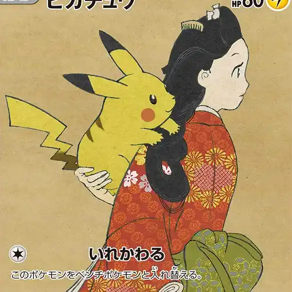 日本郵便株式会社がポケモンと連携して実施した施策の一つとして、2021年8月25日に発売された「ポケモン切手BOX~ポケモンカードゲーム 見返り美人・月に雁セット~」には、「見返り美人」「月に雁」をそれぞれモチーフにした「ピカチュウ」「ウッウ」が付属しています。