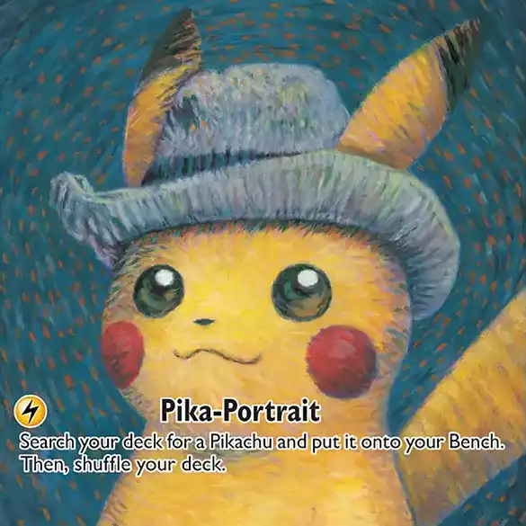 ゴッホ美術館の開館50周年を記念して、2023年9月28日から開催されたポケモンとゴッホ美術館の公式コラボレーションでは、「灰色のフェルト帽をかぶった自画像」をモチーフにした「ピカチュウ」が配布されました。その後、来館者や美術館職員の安全のために配布が中止され、対象商品の購入特典という形式に変更されました。