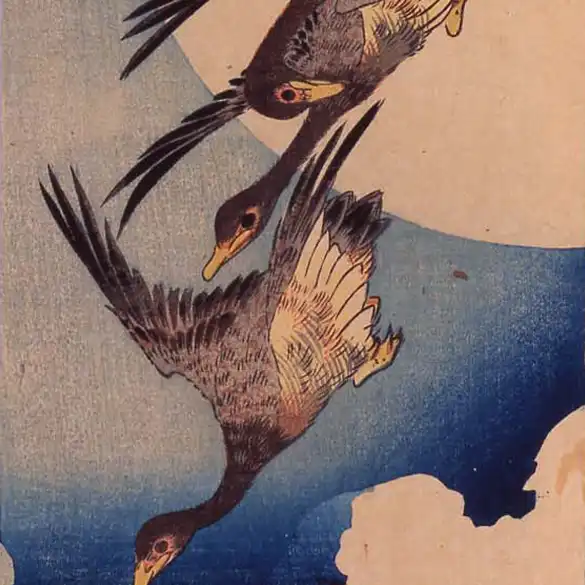 月に雁とは、浮世絵師である歌川広重の傑作「月に雁」のことです。所蔵者は東京国立博物館です。