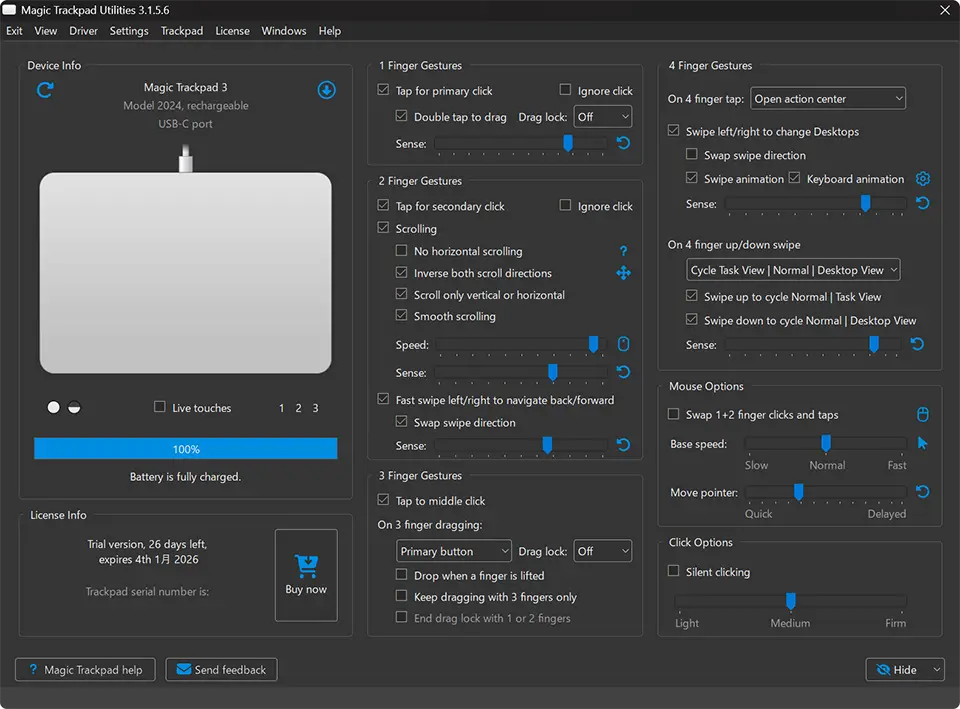 Magic Utilitiesは、WindowsでMagic Trackpadが使用できるようになる、有料のドライバです。