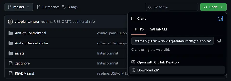 以下のGitHubページを参考に、無料のオープンソースドライバ(MagicTrackpad2ForWindows)を使用して、WindowsでMagic Trackpadを動かす方法をご紹介します。