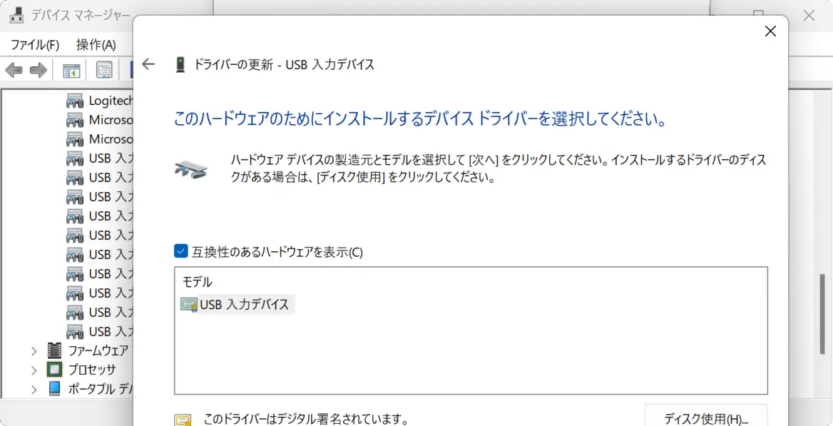 ヒューマン インターフェイス デバイスに表示されたデバイスの中から、デバイス インスタンス パスの値がUSB\VID_05AC&PID_0324&MI_00\***のデバイスを探します。